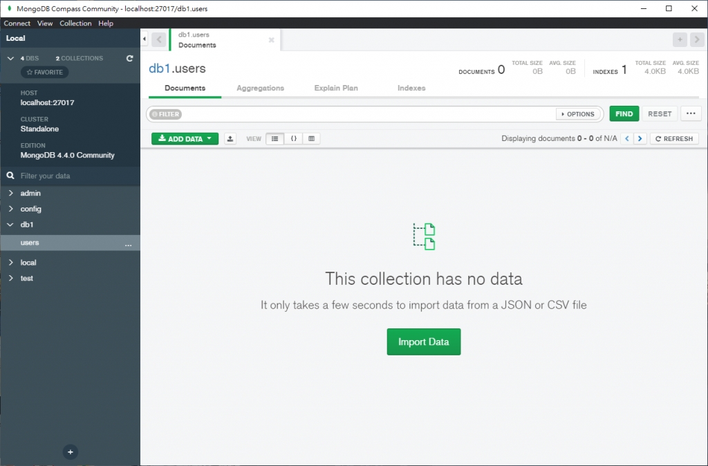 繼昨天的安裝教學,我們現在來建立待會要使用的 database 以及 collection :